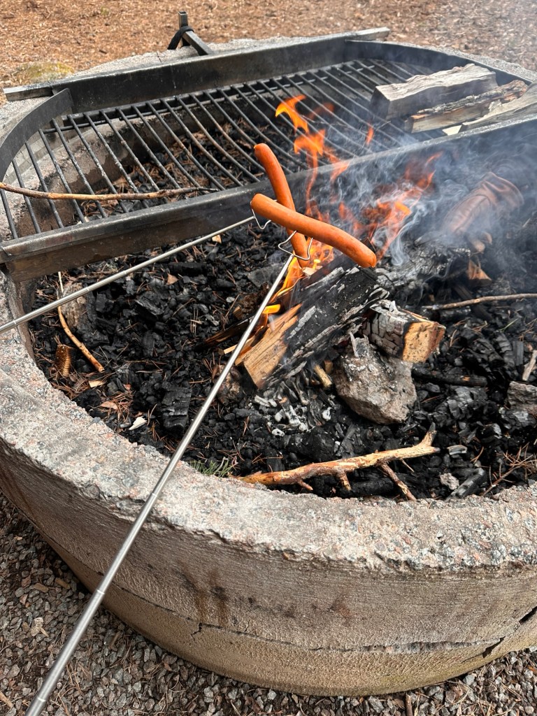 Det är så mysigt att grilla korv utomhus. Smakar alltid bättre. Klart han är stolt som kan cykla själv nu.