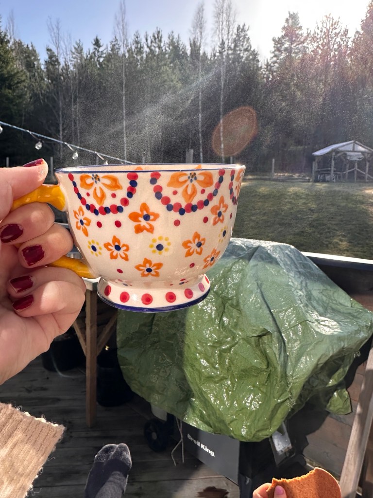 Idag har vädret varit helt underbart! Vi har plockat fram alla utemöbler och satt ihop studsmattan, och barnen har hoppat som bara den. Självklart har vi njutit så mycket som möjligt av vädret.