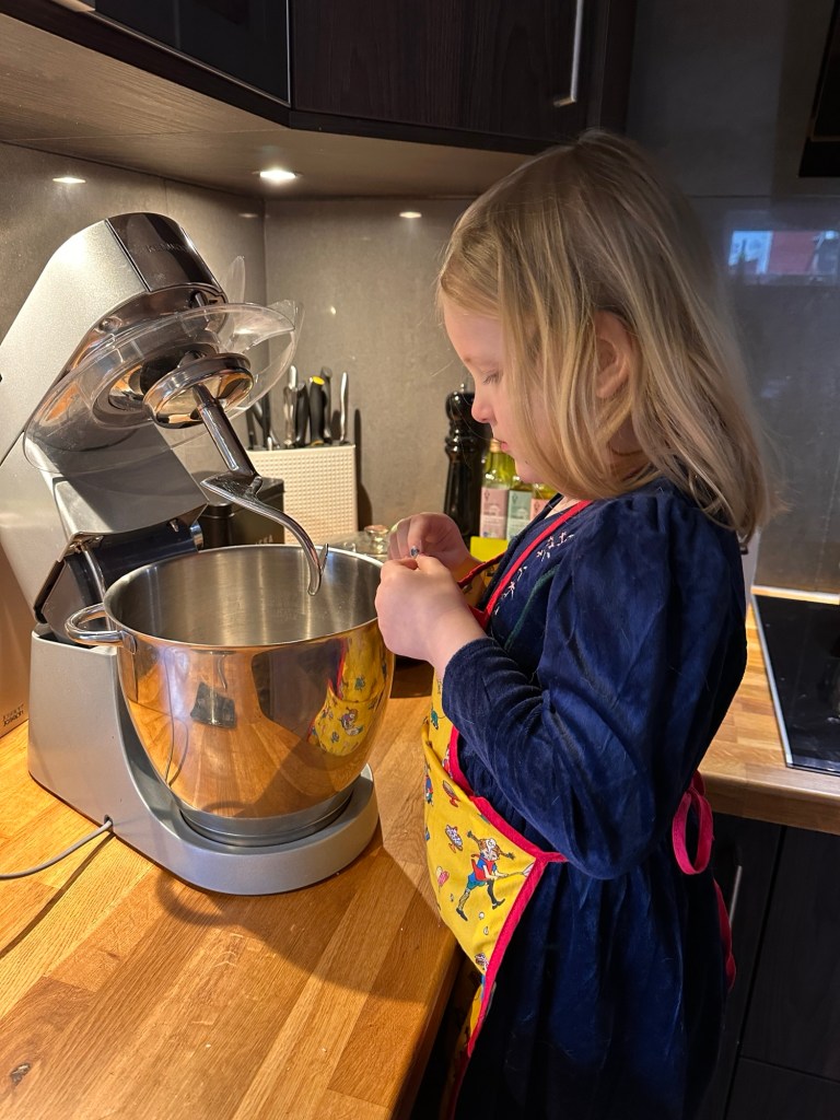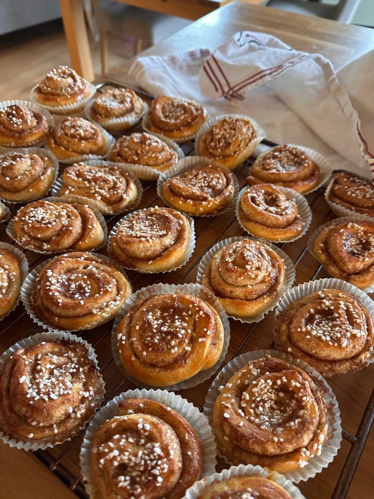 I söndags var det riktigt blåsigt och regnigt så vi höll oss för det mesta inne, och jag och M bakade kanelbullar inför hennes kompiskalas i helgen. Vi hade det riktigt mysigt tillsammans medan Joakim och W höll på ute i garaget.