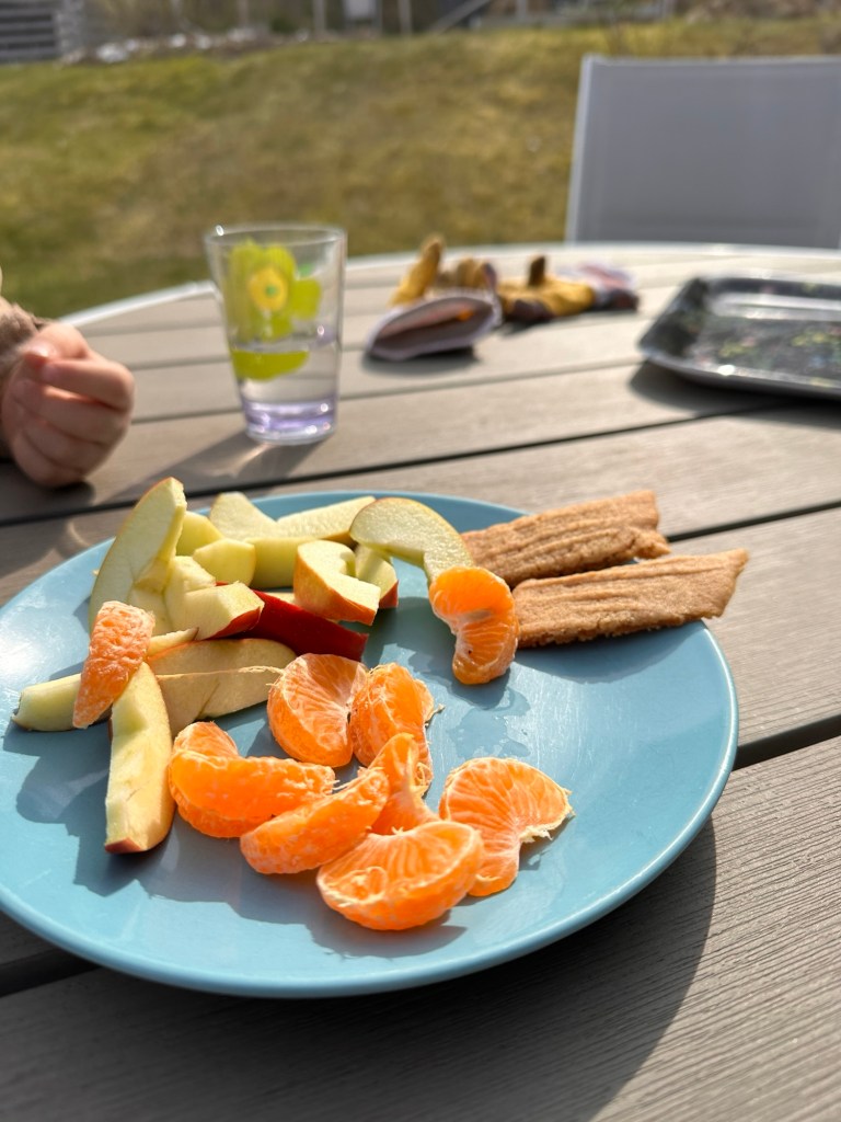 En riktig dunderhelg får jag säga att vi haft. Vädret har varit toppen och stora delar av dagarna har tillbringats ute. I lördags var M och Joakim iväg på gokartträning och jag och W tillbringade hela förmiddagen med att rensa ogräs och göra iordning i pallkragar och lägga ut ny täckbark kring träden. Det är så roligt att W vill hjälpa till och vi hann gå igenom alla möjliga sorters insekter som dök upp också. Givetvis blev det även en fika ute i solen efter allt hårt arbete.